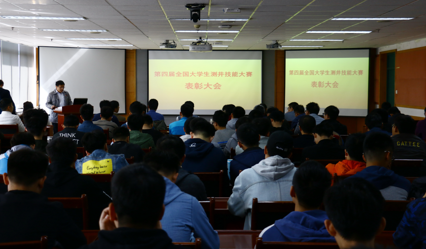 【本站讯】为了总结大赛经验,表彰先进个人,促进专业发展,4月27日,测井系第四届全国大学生测井技能大赛总结表彰大会在C-757学术报告厅举行。教务处副处长刘臻、校团委副书记孙启龙、学院党委副书记徐永涛、副院长邓少贵、研究生辅导员杨建敏以及测井系教师、本科生和研究生等140余人出席会议。会议由测井系书记谭宝海主持。