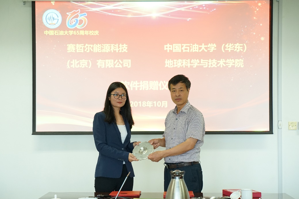 落其实者思其树,饮其流者怀其源。校庆期间89级校友、赛哲尔能源科技(北京)有限公司总经理赵锋女士向学校捐赠该公司研发的“UniEarth储层岩石物理软件”。中石化物探院向学校捐赠NEWS软件。