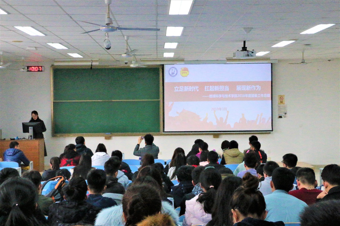 团委书记霍宁宁传达学校《共青团2019年工作要点》并做总结讲话,2019年yl23455永利官网共青团的主要工作,一是聚焦主责主业,强化大学生的思想引领,进一步发挥学院“大地经纬”育人平台的作用;二是抓好队伍,树立典型,做实从严治治团。发挥学科优势,多角度挖掘个人和集体典型,做好五四表彰工作;三是整合资源,搭建平台,助力第二课堂育人效果。成立第二课堂工作室,结合学院特色为学生提供更多自主选择的“产品”。