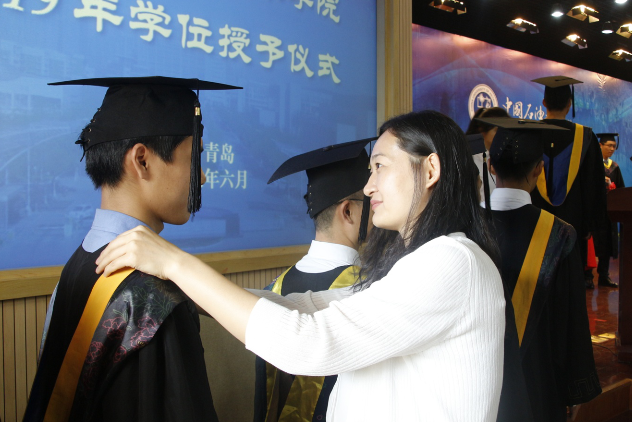 【本站讯】6月23日下午,我院2019届毕业生学位授予仪式在逸夫礼堂隆重举行。仪式由学院副院长邓少贵主持。学院学位评定分委员会主席、院长林承焰教授,学位评定分委员会委员,教授委员会主席刘可禹教授共同为386名本科毕业生和287名硕士毕业生授予学位。