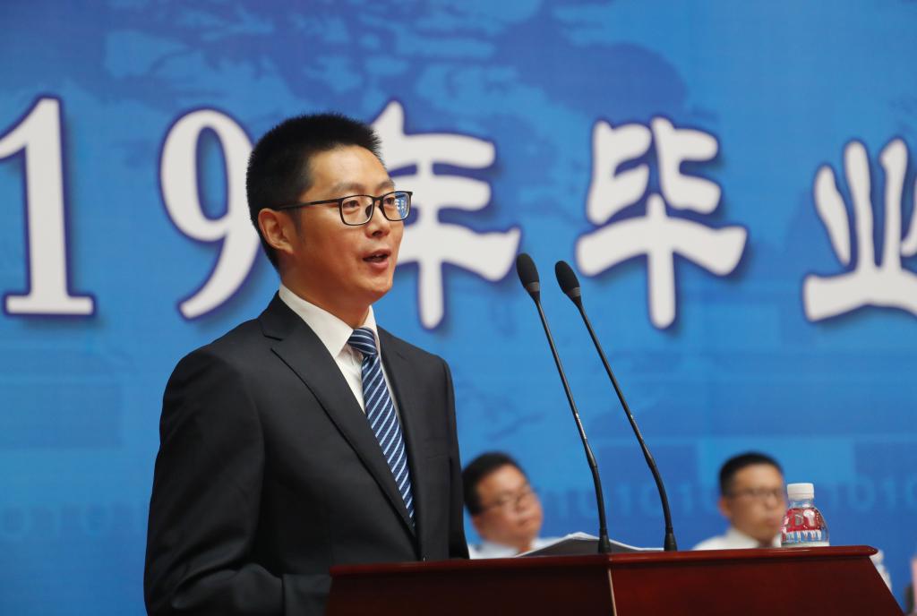 我院勘查技术与工程专业2001级校友郭旭光作为校友代表讲话 杨安摄影