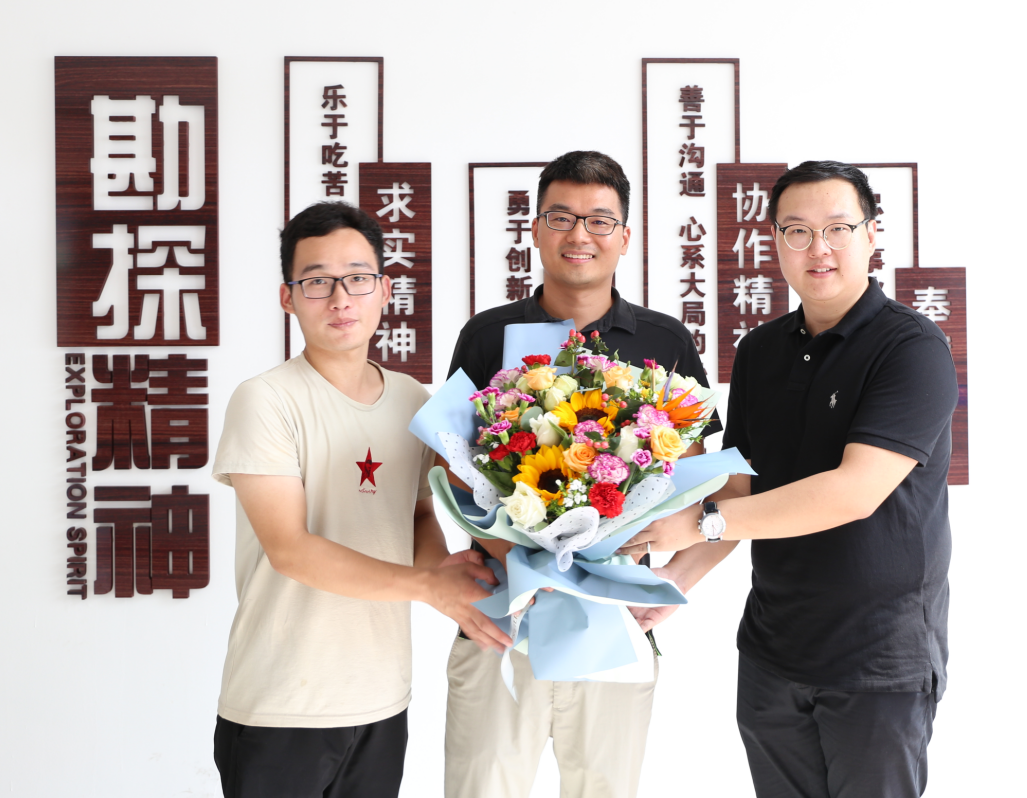 学生代表张浩、于蔡欣达为范宜仁教授、刘可禹教授等教师代表赠送学生书法作品、鲜花表达感恩之情。“这是我收获到的最好的教师节礼物,我会以 ‘淡泊常泰’来要求自己专心治学,将知识在三尺讲台之上发扬传播,为祖国培养新时代的地学前沿人才。” 范宜仁老师高兴地说。