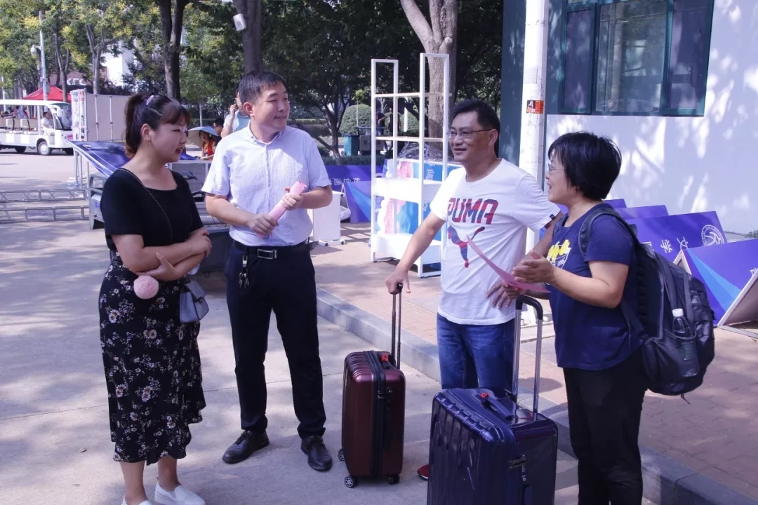 前往青岛四方长途站接站的工作人员和志愿者6点多就从学校出发,另一部分志愿者也早早等待在学校门口,迎新2019级地院学子。或是举起迎新标牌,或是静静守在服务位点,为迎接新生,志愿者们顶着炎热的天气,为新生们提供完美的服务。