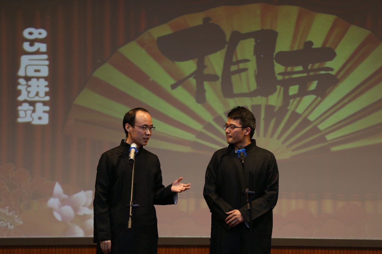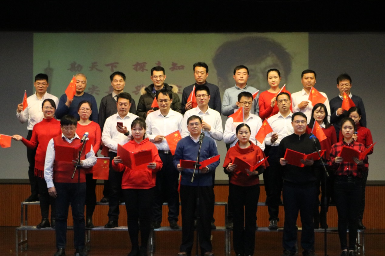 随后,新年联欢会在大学生艺术团激情洋溢的街舞表演中拉开帷幕,动感的节奏和活力四射的动作表现出当代大学生的青春魅力。地质系教师远光辉和夏鲁带来的相声《85后进站》用诙谐幽默的语言展现了青年教师青春昂扬、奋发拼搏的精神风貌。“锦绣河山美如画,祖国建设跨骏马,我当个石油工人多荣耀...”非常规油气中心教师合唱的《我为祖国献石油》,感染力十足,点燃了全场的豪迈激情。地球物理系教师表演的小人舞《欢乐舞台》将会场欢乐的气氛推向高潮,一个个“小人”诙谐的动作,再配上音乐串烧,让在场的老师们欢笑连连,纷纷举出手机记录这难忘时刻。资源系教师用独特幽默的“三句半”将2019年yl23455永利官网的故事讲给每一个人听。在联欢会最后,测井系和院机关教师一起朗诵并合唱《我和我的祖国》,优美的旋律、深情的朗诵,表达了yl23455永利官网广大教职工对祖国的热爱之情。