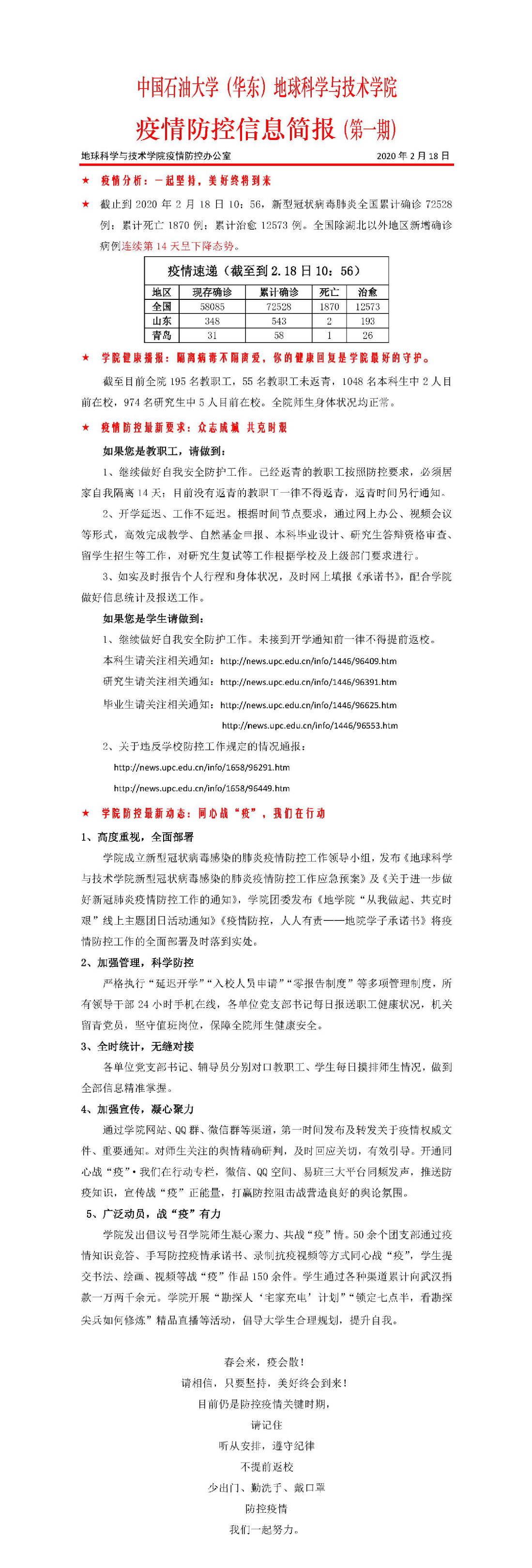 【疫情防控】yl23455永利官网疫情防控信息简报第一期
