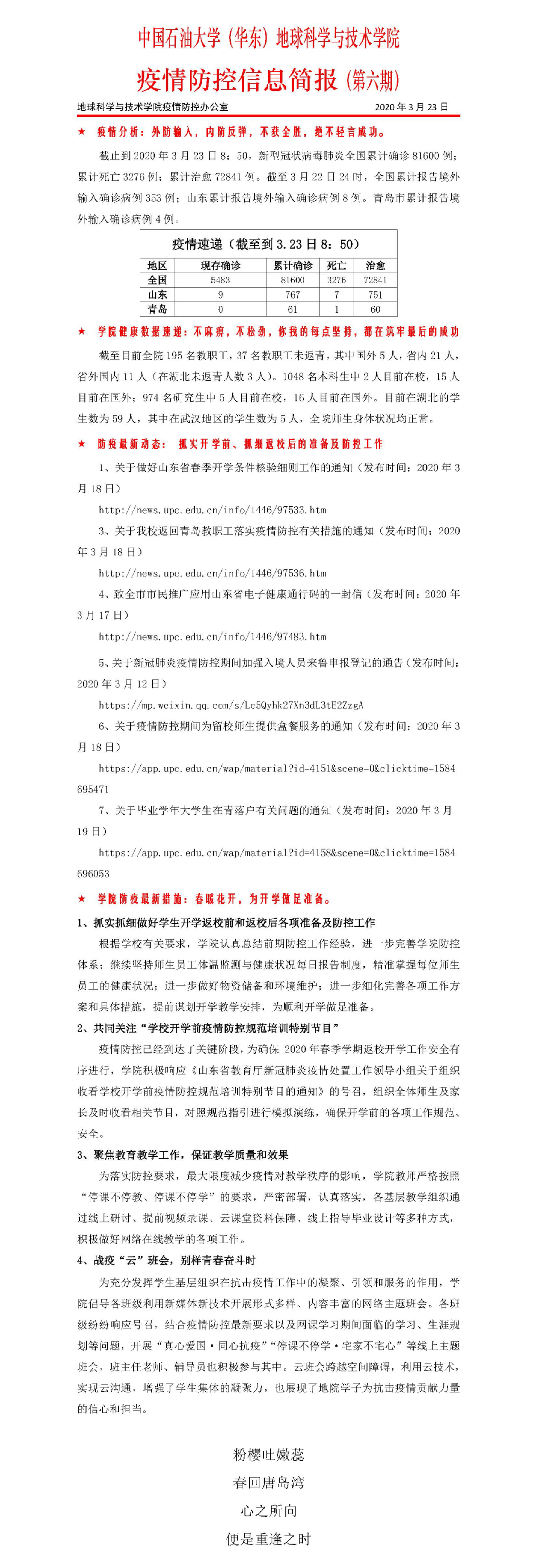 【疫情防控】yl23455永利官网疫情信息简报第六期