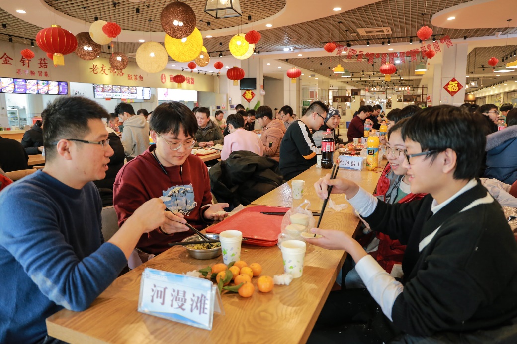 “饺子的寓意有几个?”“冰蚀谷是在什么环境下形成的?”张立强教授结合关于饺子的传统文化和地球科学的相关知识发起现场竞答活动。同学们纷纷响应积极举手抢答问题,现场气氛更加活跃。