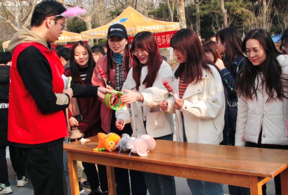 “晴天为何打伞,这个的谜底到底是几个字呀?”3月7日下午的子元广场思美节开幕式正式拉开帷幕,yl23455永利官网学生会,研究生会举办了“党史灯谜,献礼百年”系列活动,包括“党史灯谜”、创意手工、剑玉挑战、套环游戏等四个游戏。游戏中的灯谜大多与党史相关,参与者可以在欢乐之余了解党史,寓教于乐。此外,参与创意手工制作可以学习如何捏制橡皮泥,同时将作品带走留作纪念。现场欢声笑语,气氛热烈。