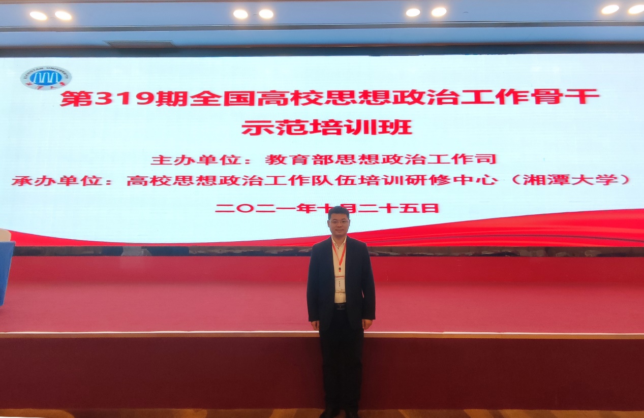 10月24日至27日,我院辅导员任金恒赴湖南省湘潭市参加第319期全国高校思想政治工作骨干示范培训班,就“传承弘扬中国共产党精神谱系”进行了专题学习并顺利结业。
