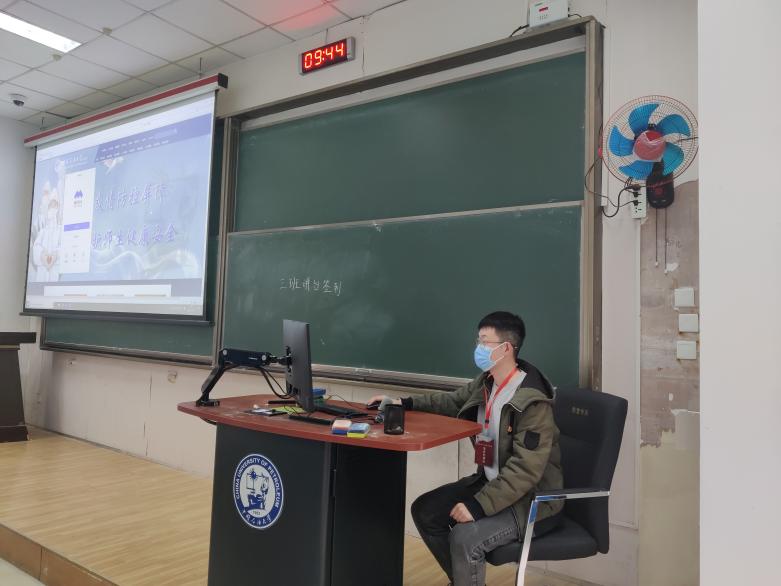 资源专业本科生党支部贾益东督促课堂同学戴好口罩 王伦摄