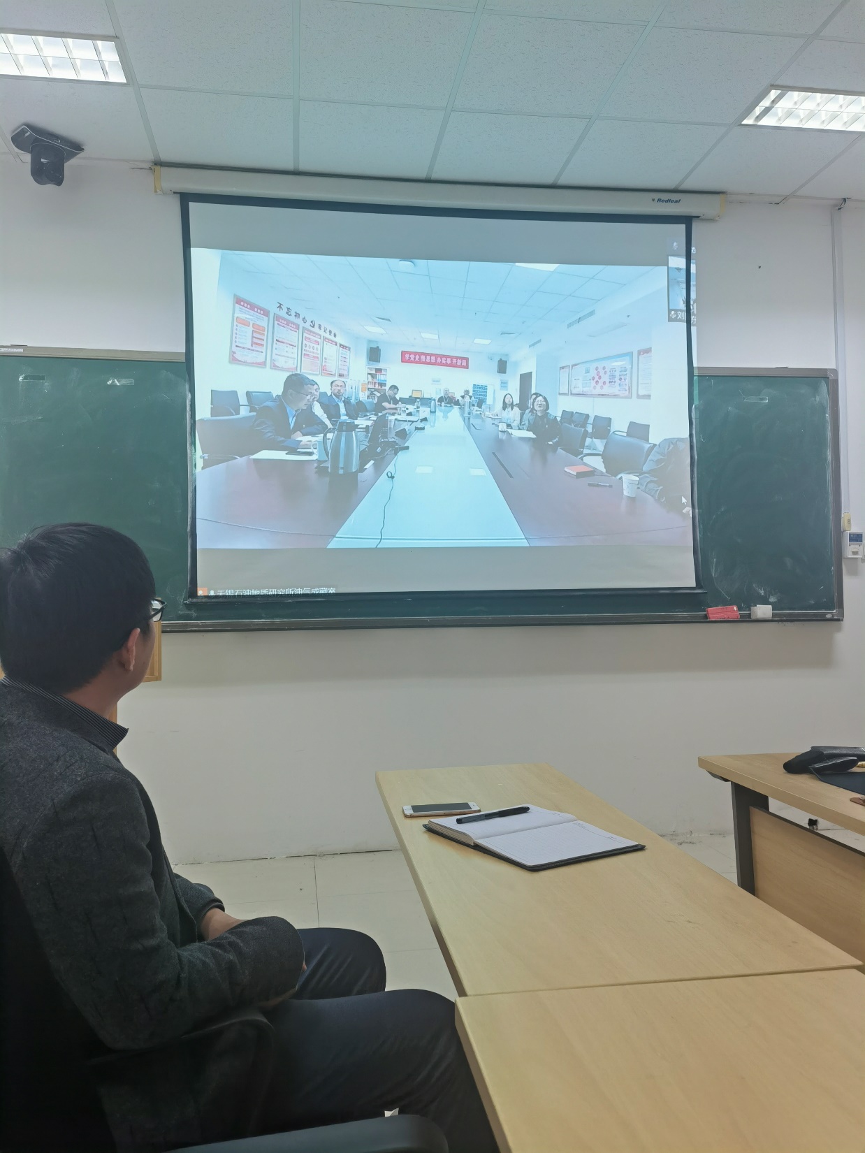 我院资源系党支部书记、主任张立强教授介绍了资源系党支部的基本情况和发展历史,并从党员情况、人才培养、学科建设等方面进行了全面的介绍。重点对资源勘查工程专业及其优势和特色、教育部首批虚拟教研室建设情况、学院“深层油气重点实验室”和“油藏地质山东省重点实验室”的大型设备情况,以及“油气输导体系定量评价技术、地化与岩矿结合运移示踪技术、深层储层沉积相综合解释技术、致密油储层甜点评价技术”等支部非常有特色的12项研究技术进行了重点交流,希望推进支部间青年教师和专家的交流合作,并就三地党支部的共建成效寄予了美好期望。