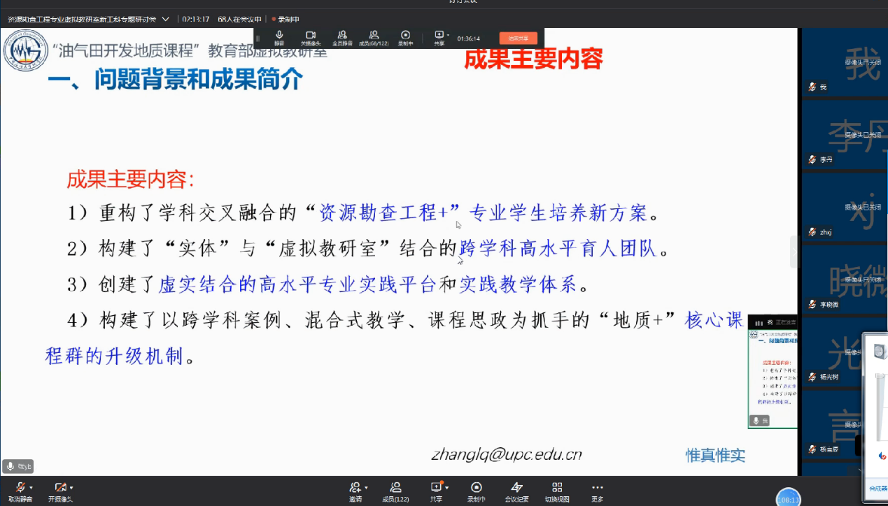 研讨会由资源勘查工程专业虚拟教研室主任、国家级教学名师、国家万人计划教学名师、中国石油大学(华东)蒋有录教授主持。