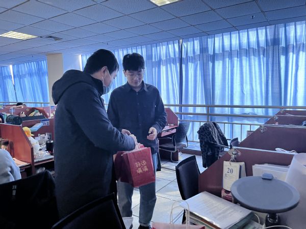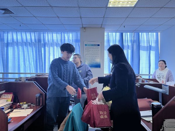 “福袋牛奶和巧克力,是希望同学们在冬季也感到一丝温暖;贺卡上是2019级其他学生对2019考研同学最真切的祝愿。礼物虽小,重在心意!希望各位考研的同学都能实现自己的目标,成功上岸!”本次活动负责人孙清在活动结束之后,感谢各位学生和教师们对活动的支持。