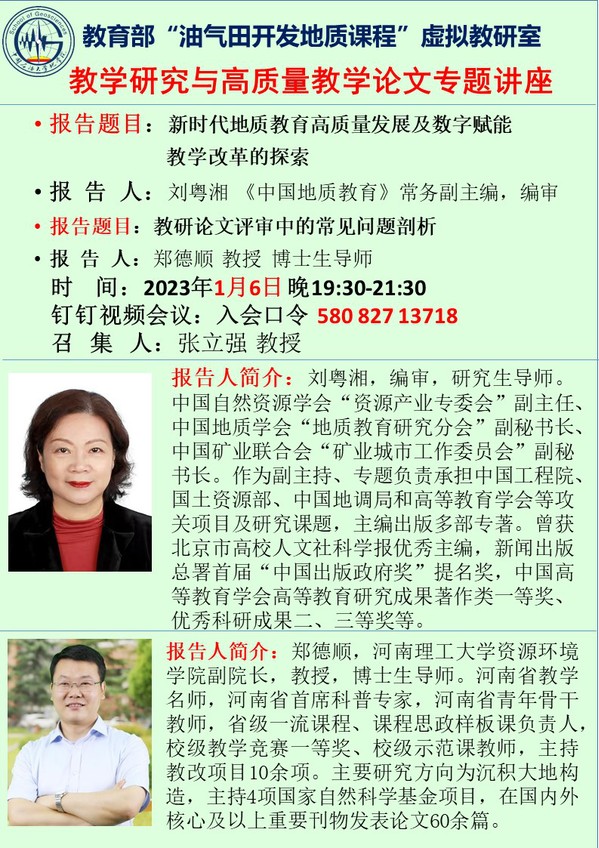 【预通知】教育部“油气田开发地质课程”虚拟教研室活动-教学研究与高质量教学论文专题讲座