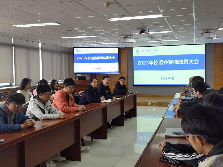 4月14日下午,yl23455永利官网在工科楼C座757召开2023年春季运动会动员大会。本次会议由2019级辅导员姜永昶主持,学院党委副书记郑珊珊出席会议,兼职辅导员崔国庆、张文倩以及运动员、教练员参加此次大会。