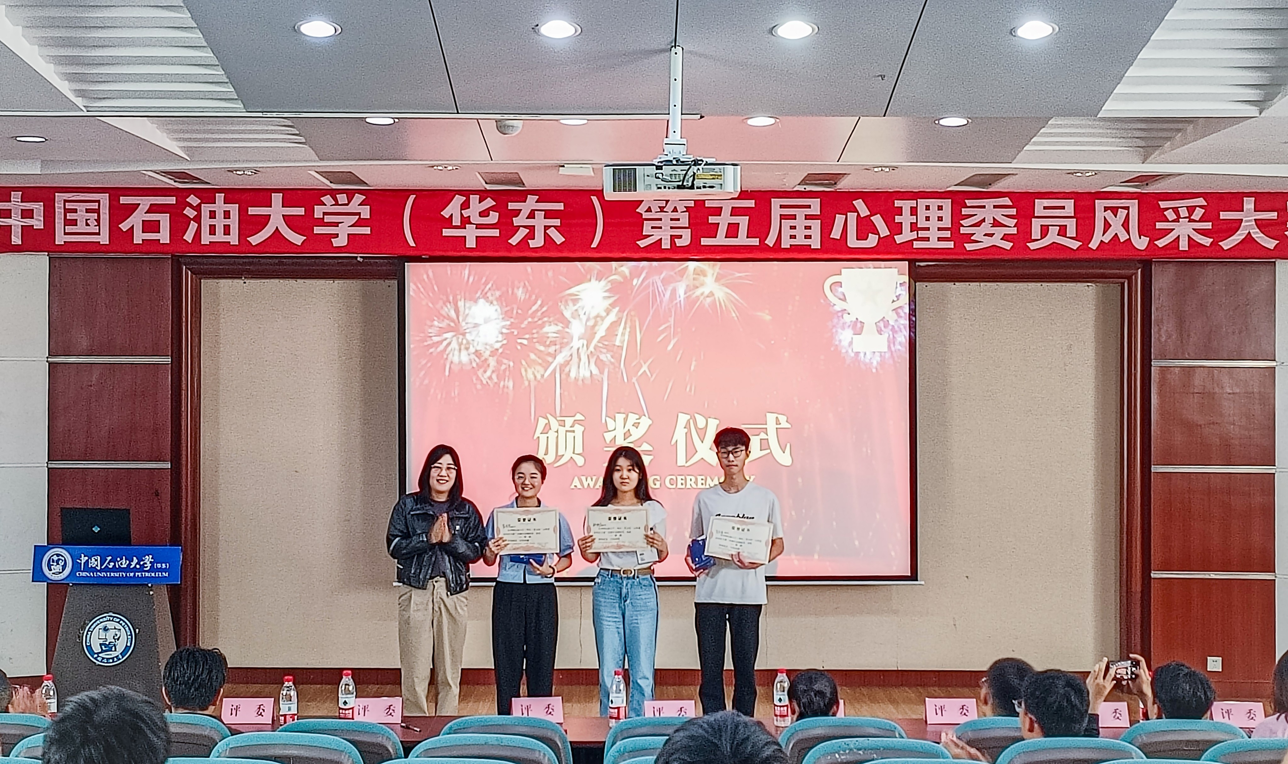 中国石油大学(华东)第五届心理委员风采大赛决赛于5月20日在西环301举行。我院积极组织学生参赛、备赛,通过激烈的角逐,测井2201韩静蕊、地质2202肖定海脱颖而出,荣获一等奖,其“解铃堂”队伍获得冠军。