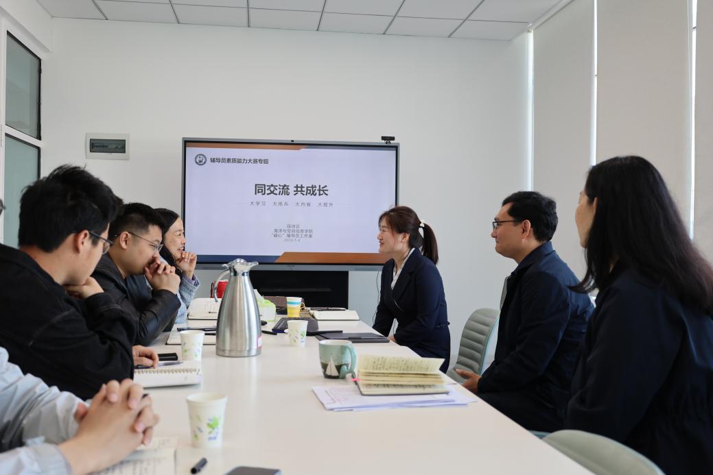 辅导员沙龙是学院辅导员素质能力提升计划的重要环节,每期设置一个主题,内容涵盖党团建设、就业工作、心理健康、自身成长等辅导员工作的多个方面,通过邀请校内外专家讲座或组织辅导员交流分享等形式,进行有深度的互动交流,提升辅导员育人能力水平。