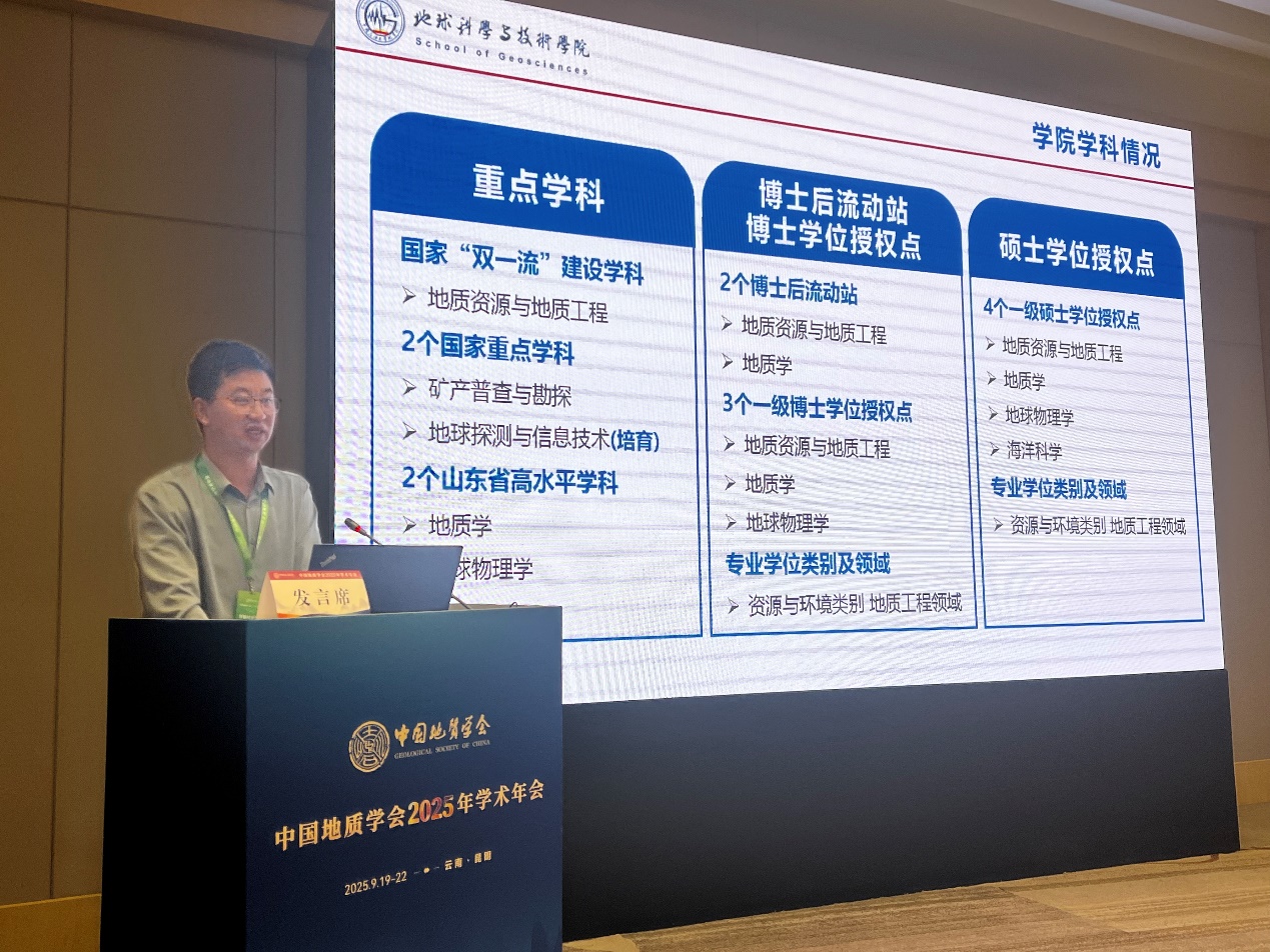 学院副院长孟凡超、资源系主任张立强在人才智能赋能地学创新人才培养与科技成果转化专场分别作《中国石油大学(华东)AI赋能地球科学学科建设与人才培养初探》和《数智赋能资源勘查工程专业核心课程建设及人才培养的探索与实践》报告,介绍我院人工智能在学科、专业、课程建设以及人才培养方面的典型做法和具体实践,受到与会者广泛关注。梁超教授作为第一召集人组织“深水沉积与能源资源效益”专题,并做《湖泊咸化机理及其对有机质富集的控制》报告,介绍现代及深时记录中咸化湖泊形成机理,及其对湖泊水文生态、生物地球化学循环和有机碳埋藏的控制作用。